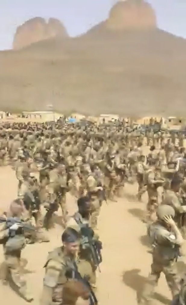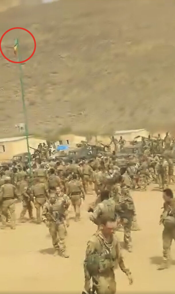 Aussi, la montagne qui apparaît en arrière-plan dans la vidéo, correspond en tous points à Hombori, au Mali. Il y avait justement là une base des forces armées françaises. En mai 2021 (date de publication de la vidéo sur X), les militaires français y étaient effectivement très présents. Ils avaient installé une piste d’atterrissage sur la base pour permettre un pont aérien, l’acheminement de troupes et le rapatriement des blessés, comme l’a rapporté le 31 mai 2021 le site des archives du ministère français des armées.